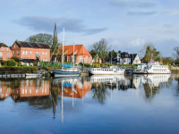 Eine ganz besondere Fähre ist seit 2006 wieder in Betrieb: die Schwebefähre in Osten bei Hemmoor. Das einzigartige Industriedenkmal wurde 1909 eingeweiht und ist damit die älteste Schwebefähre Deutschlands. Die Stahkonstruktion heißt auch der »Eiffelturm des Nordens«.